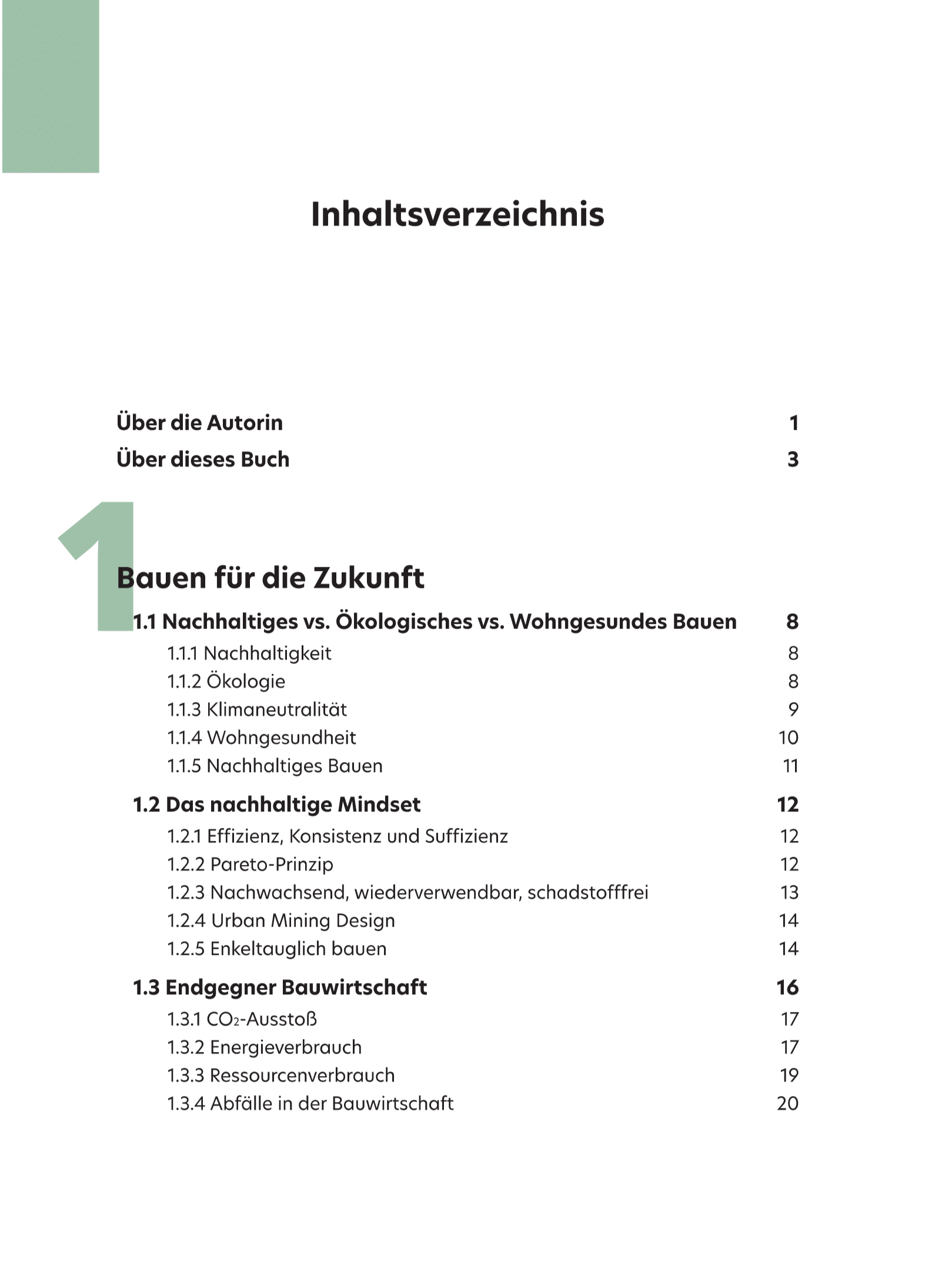 Immer häufiger wird im Zusammenhang mit Bauprodukten das Wort „nachhaltig“ und „wohngesund“ verwendet – zurecht? Mit kritischen Betrachtungen der Nachhaltigkeit und detaillierten Baustoffübersichten hilft dir das Buch dabei, wirklich nachhaltige Produkte auszuwählen.